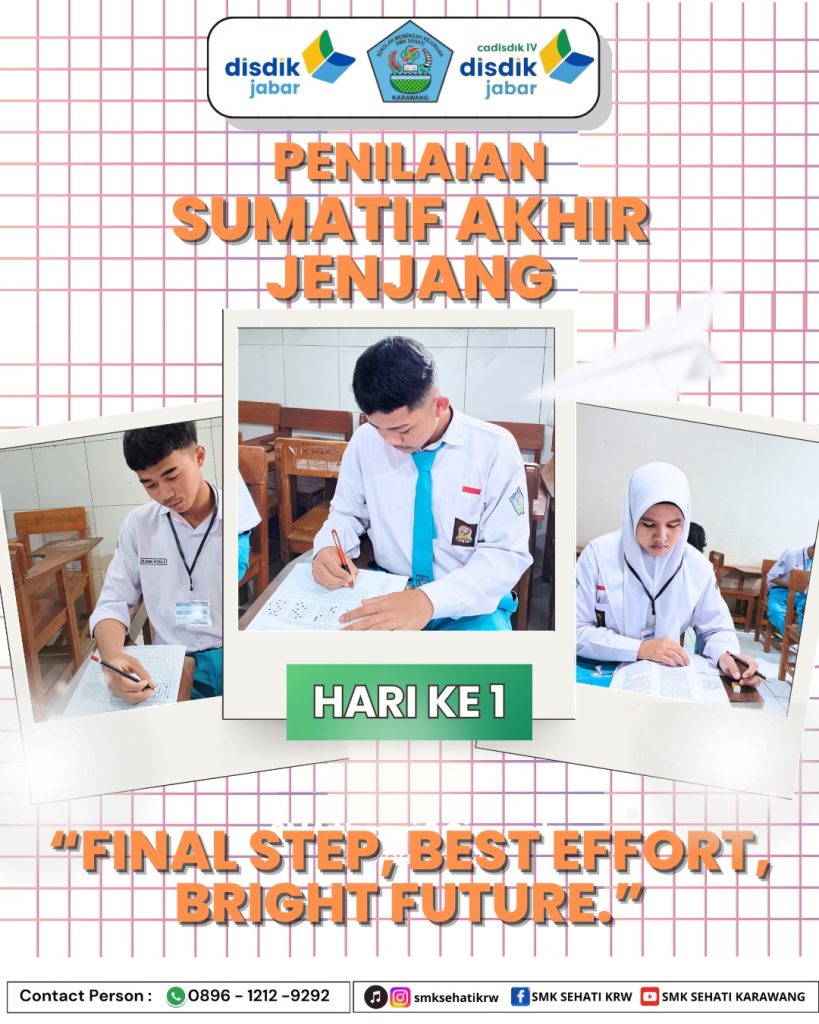 SMK Sehati Karawang, 02–06 Maret 2026 SMK Sehati Karawang melaksanakan kegiatan Penilaian Sumatif Akhir Jenjang (PSAJ) pada tanggal 02 Maret hingga 06 Maret 2026. Kegiatan ini merupakan tahapan penting dalam proses evaluasi akhir bagi peserta didik kelas XII sebagai bagian dari pengukuran capaian kompetensi selama menempuh pendidikan di jenjang SMK. Pelaksanaan PSAJ hari pertama berlangsung […]